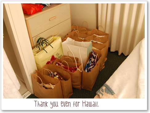 ラッピングとか、袋とか、そーゆーものはハワイにはなさげなので