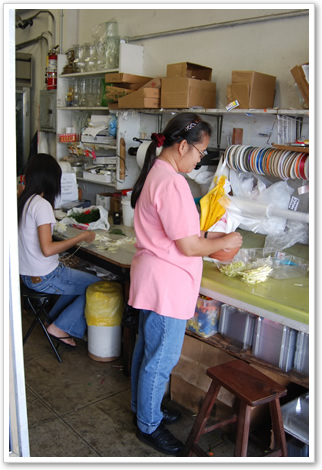 キャシーのレイは、しょうがの花のつぼみに、はなびらを1枚1枚巻き付けているそう。