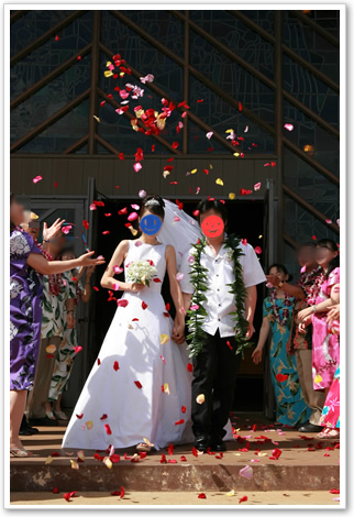 こんな感じで、ゲストにレイ、山ほどペタルのフラワーシャワー