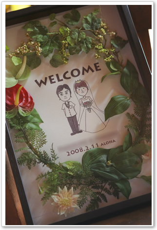 似顔絵はスキャナでとりこんで、ウェルカムと日付と名前を入れました
